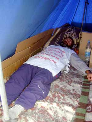 İskenderun Belediyesi’nde işten çıkarıldığı için İskenderun’dan Edirne’ye protesto yürüyüşünde bulunan Aziz Toplar, Kapıkule Sınır Kapısı’nda başlattığı açlık grevini ölüm orucuna çevirdi. Toplar, Edirne Belediyesi’nden de kefen ve tabut talebinde bulundu.
