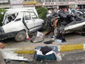 Hatay'ın İskenderun İlçesi'nde Suriye uyruklu bir şoförün kullandığı odun yüklü kamyonun freni patladı ve kırmızı ışıkta bekleyen 7 aracı biçti. Olayda 2 kişi öldü, 12 kişi de yaralandı.