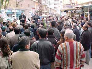 "2005 yılının arifesinde, 60 yıllık bir ilçe halkı elektrik mi dilenecek? Halen Samandağ’ın yolundan suyuna kadar hiçbir temel ihtiyacının karşılanmadığını görüyoruz. Samandağ’ın seçilmiş veya atanmış tüm kuruluş ve kurum amirlerine sesleniyoruz. Samandağ’ı köyü, beldesi ve merkezi ile ortaçağ karanlığına mahkum ediyorsunuz. Hiçbir mazeret veya bahane halka çektirdiklerinizi haklı kılamaz. Sosyal devlet ilkesi gereğince en temel ihtiyaçlar olan yol, su ve elektrik gibi hizmetlerini bizden esirgeyen Samandağ’ı, insanlarını kaderlerine terk eden hizmeti ve hizmet anlayışını Samandağ halkı olarak protesto ediyoruz."