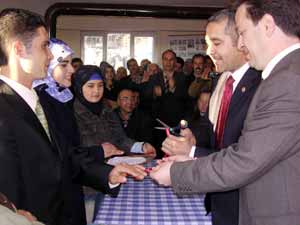 AKP Hatay Milletvekili Mehmet Soydan ve Yayladağı Kaymakamı Enver Ünlü tarafından takıldı. Havaların aniden soğuması nedeniyle köy meydanında yapılması planlanan nişan töreni, Çabala Köyü İlköğretim Okulu’nda bir sınıfın içerisinde gerçekleştirildi.