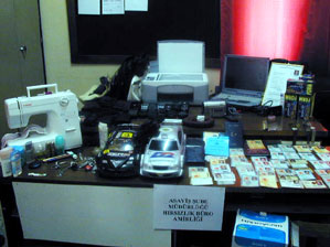 Isparta Emniyet Müdürlüğü'ne bağlı Asayiş Şube Müdürlüğü Hırsızlık Büro Amirliği ekiplerinin evde yaptığı aramada TRV460 Sony marka dijital kamera, Sınger 1116 marka dikiş makinesi, Siwitel marka telsiz telefon, muhtelif gıda, giyim eşyaları, 1 adet işyeri açma ve çalıştırma ruhsatı, işyerinden çalınan 1 adet Toshıba marka diz üstü bilgisayar, 9 adet bayan kol çantası, 2 adet bel çantası ele geçirildi.