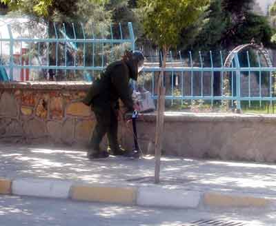 Emniyet Müdürlüğü yanında bulunan Endüstri Meslek Lisesi önünde bulunan paket, emniyet birimlerini harekete geçirdi. Polis yetkilileri olay yerinde araç trafiğini ve yayaların geçişini önledi. Bomba imha uzmanı poşeti Aker cihazı ile patlattı. Poşetin içinden üç adet erkek pantolonu çıktı.