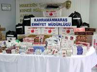 Kahramanmaraş Emniyet Müdürlüğü’nden yapılan açıklamaya göre, bir istihbaratı değerlendiren Kaçakçılık ve Organize Suçlar Müdürlüğü’ne bağlı ekipler, Irak’tan kamyonculara getirtilen gümrük kaçağı sigara ve çayın önce Şanlıurfa’da daha sonra ise Gaziantep ve Kahramanmaraş’ta piyasaya sürüldüğünü tespit etti.