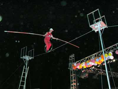 Diş hekimi cambaz Dr. Hüseyin Galip Turan, Kahramanmaraş Belediyesi tarafından düzenlenen Yaz Şenlikleri’nde tel üzerindeki gösterileriyle izleyenlere heyecanlı anlar yaşattı.