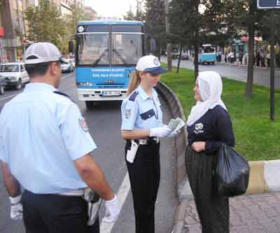 Trafiğin yoğun olduğu Kıbrıs Meydanı ve Valilik Kavşağı’nda denetimlerini sürdüren trafik ekipleri, yayaların trafik kurallarına uymaları konusunda gerekli ikazlarda bulunurken, bir yandan da broşür dağıtıyor.
