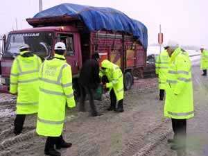 Kahramanmaraş’ta sabah saatlerinden itibaren kar yağışı etkisini artırırken, şehir içi trafik ekipleri de Kayseri yönüne gidecek büyük araçların geçişine izin vermiyor. Kahramanmaraş Emniyet Müdürlüğü Şehir içi Trafik Ekipler Amiri Başkomiser Hasan Çöloğlu, hava ve yol şartlarını dikkate alarak özellikle Kayseri yolunda denetimleri sıklaştırdıklarını belirterek, "3 ekiple Ağabeyli Yol Kavşağı’nda zincir denetimi yapmaktayız. Yoğun kar yağışı nedeniyle Kahramanmaraş-Kayseri yolunda ulaşım güçlükle sağlanıyor. Sürücüleri zincir takmaları konusunda uyarıyoruz. Zincirsiz araçları kesinlikle trafiğe çıkarmıyoruz. Ayrıca dorseli TIR’ların Kayseri yoluna girmelerine izin vermiyoruz" dedi.