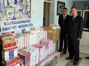 Emniyet Müdürü Necdet Çelikbilek, düzenlediği basın toplantısında Kahramanmaraşta 4 bin 59 adet sahte ve kaçak sigara ele geçirildiğini açıkladı. Olayla ilgili 5 şüphelinin göz altına alındığını kaydeden Çelikbilek, ele geçirilen sigaraların geçtiğimiz günlerde gündeme gelen sahte rakı olayında olduğu gibi üretiminin hangi koşullarda yapıldığının bilinmediğini vurguladı.