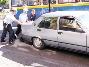 Kahramanmaraşta bir trafik polisi, sabah saatlerinde bir yandan trafiği düzenlerken, diğer yandan yolda kalan otomobillere yardım ediyor. Şehrin en işlek caddesi olan Trabzon Bulvarında görevli polis memuru, sabahın erken saatlerinde bir otomobilin yol ortasında kaldığını görünce usulca yaklaşarak ilerlemesini istedi.