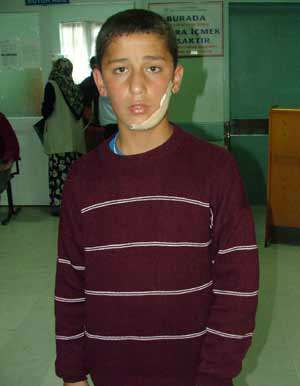 Mersinde baliciler, parasını almak istedikleri 12 yaşındaki bir çocuğu yüzünden ve elinden bıçakla yaraladı.