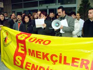 Mersin’de Büro Emekçileri Sendikası (BES) üyeleri, Defterdarlık binası önünde yaptıkları eylemde, iş güvencesini yok edeceğini ileri sürdükleri yasal düzenlemeleri protesto etti.