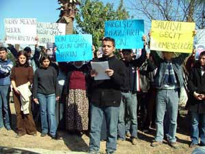 DEHAP Mersin İl Gençlik Kolları üyeleri, bugün adliye önünde yaptıkları açıklamayla, korsan gösteriler sırasında ölü bulunan Ümit Gönültaş olayının aydınlatılmasını istedi. Mersinde 14-18 Şubat tarihleri arasında yapılan korsan gösterilerin ardından bugün öğle saatlerinde Mersin Adliyesi önünde toplanan DEHAP İl Gençlik Kolları üyeleri, basın açıklaması ve oturma eylemi yaptı.