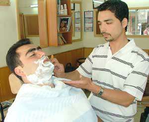 Mersinde bir erkek kuaförü, müşterilerini tıraş olmaya internet üzerinden cep telefonlarına gönderdiği kısa mesajla çağırıyor.