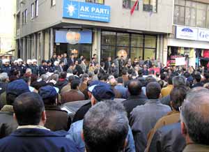 Mersin’de ki ikinci eylem ise, Emek Platformu’nun AKP İl Teşkilatı önünde gerçekleştirdiği eylem oldu. SSK hastanelerinin Sağlık Bakanlığı’na devri ile Köy Hizmetleri’nin tasfiyesine ilişkin yasa tasarılarına karşı eylemlerini sürdüren Mersin Emek Platformu, AKP il binası önüne yaklaşık bin kişiyle geldi.
