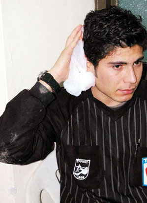 Mersin Amatör Küme’de Alataspor ile Tarsus Kanalspor arasında oynanan maçın 88. dakikasında yan hakem Onur Duman, tribünden atılan taşla başından yaralandı.