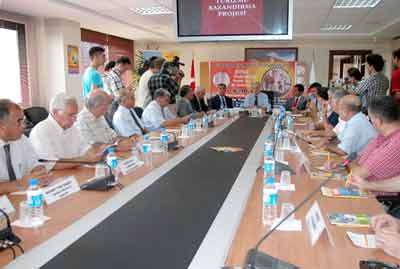 Proje kapsamında bugün bir toplantı gerçekleştirildi. MTSO Yönetim Kurulu Toplantı Salonu’nda yapılan toplantıya Vali Yardımcısı Ahmet Zahteroğulları, Erdemli Kaymakamı Yusuf Ziya Karacaev, Kargıpınarı Belediye Başkanı Kerim Şahin, Çeşmeli Belediye Başkanı Yakup Yılmaz, Limonlu Belediye Başkanı Mehmet Fikri Şimşek, MTSO Yönetim Kurulu Başkanı Kadri Şaman, Mersin Üniversitesi Rektör Yardımcısı Prof. Dr. Tamer Gök ve çok sayıda ilgili katıldı.