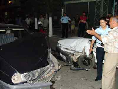 Bu arada polisler, haber merkezine bilgi vererek önlem alınmasını isterken, olay yerine yakın bulunan Organize Suçlar ekibi devreye girerek Hastane Caddesi'nde ilerlemeye başladı. Ekip, Kuruçeşme mevkiinde aniden yola çıkan Serdar Yıldızhan'ın kullandığı otomobille kafa kafaya çarpışarak kaza yaptı. Kazada, ekip otosunu kullanan Ali Ünsal (30) isimli polis memuru başından ve kolundan yaralanırken, diğer polis memuru İbrahim Acar (40) ise kazayı sıyrıklarla atlattı.