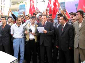 Ülkücüler, AKP il binası önünde bir gösteri düzenleyerek, Avrupa Birliği (AB) Anayasası ve Azınlık Raporu’nu protesto ettiler. Hastane Caddesi üzerindeki Metropol binası önündeki eylem, saat 13.00’da başladı. Yaklaşık 50 kişilik Ülkücü grup, AKP binası önüne gelerek slogan attı. "Ülkücüler burada, hainler nerede?", "Tayyip Avrupa’yı al başına çal" ve "Türküz, Türkçüyüz, Atatürkçüyüz" şeklinde slogan atan Ülkücüler adına Mersin Ülkü Ocakları İl Başkanı Alican Özbayrak bir konuşma yaptı. Ülkü Ocakları Genel Merkezi’nin hazırladığı basın açıklamasını okuyan Özbayrak’ın konuşmasına ülkücüler, sloganlarla destek verdi.