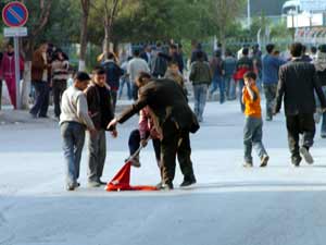 Mersinde DEHAPın Nevruz kutlamalarından sonra bir grup, araçların camlarını kırarken, Türk bayrağını cadde ortasında ateşe verdi.