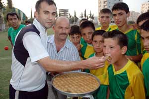 Erdemli Belediyespor Kulübü'nün yaz spor okuluna katılan minik sporculara, belediye tarafından baklava ikram edildi.
