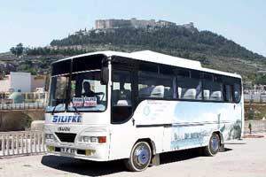 Silifke'deki tarihi ve turistik mekanların resimleri Silifke Otobüsçüleri Motorlu Taşıyıcılar Kooperatifine bağlı otobüslerin üzerine yapıştırılarak kentin tanıtımı yapılıyor.