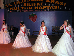 Mersin'in Silifke İlçesi'nde bu yıl 31.'si düzenlenen Uluslararası Kültür Festivali kapsamında "En Güzel Gelin" yarışması yapıldı.