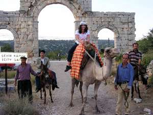 Yaz mevsimiyle birlikte bölgeye gelen turistler, denize girip güneşlenmenin yanında tarihi yerleri de geziyor. Uzuncaburç Beldesindeki tarihi ve ören yerlerini görmek için beldeye gelen turistler, buraları deve ve eşek üzerinde gezmeyi tercih ediyor. Birçoğu ilk kez deve ve eşeğe binen turistler, deve ve eşekle gezmekten büyük keyif aldıklarını belirtti.