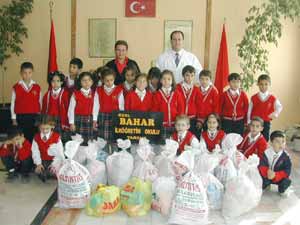 Tarsus İlçesi’ndeki Özel Bahar İlköğretim Okulu’nun minik öğrencileri, aralarında topladıkları harçlıklarla aldıkları erzakları fakir ailelere dağıttı. Minik öğrenciler velilerinin de katkılarıyla hazırladıkları 50 gıda paketini, Yeşilyurt Mahalle Muhtarlığı tarafından tespit edilen fakir aileleri evlerinde ziyaret ederek dağıttı. Öğrenciler yağ, kuru bakliyat, kahvaltılık malzeme, patates, tavuk, makarna gibi malzemelerden oluşan gıda paketlerini fakir ailelere bizzat teslim ettiler. Öğrenciler, bolluk ve bereket ayı olan Ramazan ayında fakir insanlara yardım yapmanın kendilerini çok mutlu ettiğini söylediler.
