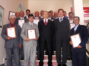 Sabah saatlerinde Taşlıçay Kaymakamı Atilla Kantay ile birlikte gelen muhtarları makamında ağırlayan ve tebrik eden Vali Hüseyin Yavuzdemir, takdirname ile ödüllendirilen bu muhtarların örnek muhtarlar olduğunu söyledi. ’Taşlıçay’da Taşlar Yerinden Oynamaya Başladı’ projesi adı altında 10 köyde devletten hiçbir yardım almadan okul çevresindeki duvarları yapan ve köydeki ağaçlandırma çalışmalarına öncülük eden bu muhtarları manevi değeri yüksek olan takdirname ile ödüllendirdiklerini belirten Vali Yavuzdemir, "Bu uygulama herkese örnek olmalı. Bu muhtarlarımız devletin beş kuruş parasını harcatmadan tamamen işçiliğini kendileri yaparak okul çevresindeki suru örmüş ve ağaçlandırma çalışmalarını köylerinde başlatmışlardır. Bizler de bu çalışkan muhtarlarımızı teşvik mahiyetinde takdirname veriyoruz" dedi.
