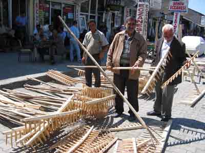 Ağrı'da yaz mevsiminin gelmesi ve hasat döneminin başlamasıyla dirgen ve tırmık satışlarında büyük artış olduğu bildirildi. 7 ila 10 milyon lira arasında satılan dirgen ve tırmıklara çiftçiler büyük rağbet gösterirken, satışların cadde ortasında yapılması yaya ve araç trafiğinde aksamalara neden oluyor. Genellikle Ağrı'nın Meydan Caddesi'nde satılan dirgen ve tırmık satışlarında bu yıl patlama yaşandığını belirten satıcı Ferzende Kaya, satışlardan oldukça memnun olduklarını söyledi. Hasat mevsimi nedeni ile tempolu günler geçirdiklerini ve genellikle toplu satışlar yaptıklarını belirten Kaya, "Çiftçilerimizin de bu yıl hasatının bol olması hem onları hemde bizi sevindirdi. Satışlarımız çok iyi" şeklinde konuştu.