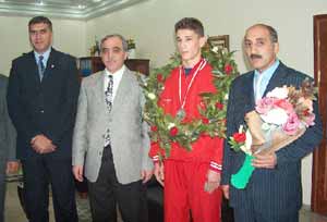Geçen hafta Antalya’da yapılan boks turnuvasında finalde Ukraynalı rakibine yenilerek dünya 2.’si olan Adem Kılıçcı Ağrı’ya döndü. Kılıçcı için Ağrı Eğitim Fakültesi’nde karşılama töreni hazırlanırken, daha sonra ise Ağrı Valisi Yusuf Yavaşcan, boksörü kabul etti.
