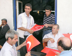 Ağrı Kamu-Sen İl Temsilcisi Kamil Taşdemir, Ağrı'da terör olaylarının bir daha yaşanmaması için halka ücretsiz Türk bayrağı dağıtarak, herkesi birlik olmaya davet ediyor. Ağrı'nın tüm cadde ve sokaklarını dolaşarak halka üzerinde "Nereye Dikilmek İstersen Söyle, Seni Oraya Dikelim" yazılı bayraklardan dağıtan Kamil Taşdemir, teröre karşı herkesin tek yürek olmasını istiyor. Ağrı'da geçtiğimiz aylarda yaşanan terör olaylarını protesto ettiğini belirten Taşdemir, bir daha bu olayların yaşanmaması için halkı birlik ve beraberliğe davet ettiğini kaydederek, "Allah bizi bayraksız, ezansız etmesin. Halkımızın daha duyarlı olması için bayrağımızı herkese dağıtıyorum. Bu vatan hepimizin beraberce sahiplenmemiz lazım" dedi.