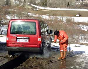 Ardahanda 1 haftadır etkili olan soğuk hava, yerini ılık havaya bıraktı. Ardahanın Posof İlçesinde tamamen bahar havasının yaşandığı son 2 gün içerisinde cadde ve sokak aralarında bulunan karın tamamen eridiği gözlenirken, gündüzleri 4 dereceye kadar çıkmasını fırsat bilen vatandaşlar da, toprak altında donan su borularını kazma kürekle açıp, tüple ısıttı.