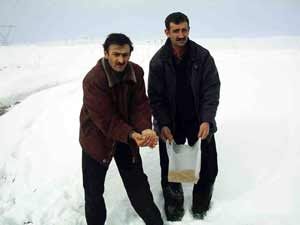 İl Çevre ve Orman Müdürlüğü görevlileri, bugün Ardahan-Göle Karayolu Çermik mevkiindeki dere yatağına kuşların yemesi için buğday bırakırken, Ardahan-Posof Karayolu üzerinde önceden tespit edilen alanlara da geyik ve karacalar için ot balyaları bıraktı.