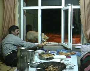 Ardahan’ın Posof İlçesi’nde Ilgar Dağı’nda bulunan Türk Telekom Müdürlüğü’ne ait role istasyonunun güvenlik görevlisi, iftar yemeklerini bir tilkiyle paylaşıyor.