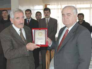 Bingöl Arıcılar Birliği Başkanı Mehmet Yaşa, birliğin kurulmasında gösterdiği gayretten dolayı Vali Vehbi Avuç’a plaket verdi.