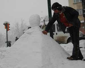 Bingöl’de hayatı olumsuz yönde etkileyen kar, kimileri için eğlence aracı oldu. Kar kalınlığının 40 santimetreyi aştığı Bingöl’de kara şekil veren Hüseyin Koç, kardan mısır piramidi ve üzerinde de dünya küresi yaptı.