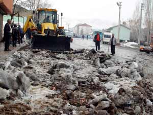 Yeni Mahalle Yavuz Selim Caddesinde çalışmalarını sürdüren Bingöl Belediyesi Fen İşleri Müdürlüğü ekipleri, kazma kürekle kıramadıkları yaklaşık 50 santimetre kalınlığındaki buzları, iş makinelerinin yardımıyla parçaladı.