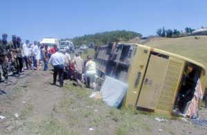 Bingölde, bir yolcu otobüsünün devrilmesi sonucu meydan gelen trafik kazasında, ilk belirlemelere göre 2 kişi hayatını kaybetti, 21 kişi de yaralandı.