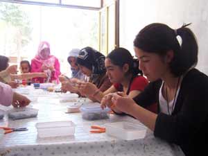 Haftanın Pazar günleri bir araya gelerek elişi kolye, küpe, bilek ve halhal türü takı malzemeleri yaptıklarını ifade eden kurs öğretmeni A.Aziz Akbaş yeni bir iş olanağı ve meslek öğrettiklerini belirterek amaçlarının kursa iştirak eden genç kız ve hanımlara yeni bir uğraş ve iş olanağı sağlamak olduğunu söyledi.