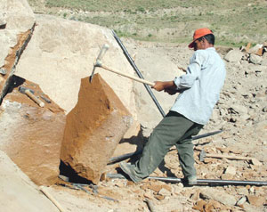 Hergün toprağı temizliyerek altındaki taşları çivi yardımıyla keserek, işlenmek üzere araçlara yüklediklerini ifade eden Nacaroğlu, "Yaptığımız iş ne kadar zahmetli olsa da alın teri döküldüğü için haz veriyor. Taş ocakları tamamen çorak bir alandadır. Büyükdüz, Değirmençalı, Kuruçay ve Çatal mevkilerin toplam 60 ile 70 kişi toprak altından ilkel yöntemlerle çıkardıkları taşları satarak ekmek parası kazanıyor. 15x30 ebadındaki bir taşın işlenmemiş hali bin 300 YTL fiyatındadır. Bir kişi ortalama günde 13 taş çıkarabiliyor. Taş ocakları eskisi gibi değil, gittikçe derinleşiyor. Taş ocaklarımız yer yer 2 ila 4 metre derinliktedir. En büyük sorunumuz ise ekmek kapımız olan taş ocaklarının mevsimsel şartlar nedeniyle birkaç ay çalışmasıdır" dedi.