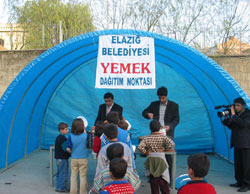 Fakir ve yoksul insanlarımızın bir kısmının Öğretmenevi önünde bulunan iftar çadırına gelemediğini gören Elazığ Belediye Başkanı Süleyman SELMANOĞLU, fakir insanlarımızın yoğun olarak yaşadığı kenar mahallelerde de iftar çadırı kurulması için talimat verdi.