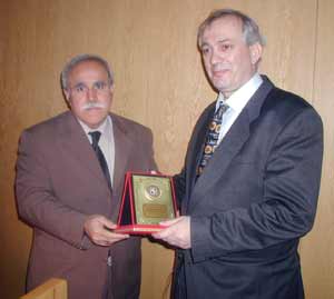 Konferans sonrası Fırat Üniversitesi Rektör Yardımcısı Prof. Dr. Harun Özer, Ankara Üniversitesi İlahiyat Fakültesi Öğretim Üyesi Prof. Dr. Salih Özdemire teşekkür plaketi takdim etti.