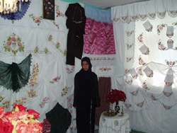 Beyhan Beldesi Halk Eğitim Müdürlüğü'nün düzenlediği dikiş nakış kursuna devam eden kursiyerler, yıl boyunca ürettikleri el emeği göz nuru eserleri sergiliyorlar.
