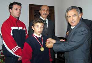 Vali Öztürk ziyaret sırasında İskender Demirel ve Garip Bayram’ı 1’er Cumhuriyet altınıyla ödüllendirirken, sporcuların antrenörleri Sıtkı Taştan ve Mehmet Özsoy’a da eşofman hediye etti. Vali Öztürk, 9-11 Temmuz tarihlerinde Ankara’da yapılan 15 yaşaltı Çoklu Branş Atletizm Türkiye Şampiyonası’nda birinci olan Gençlikspor Kulübü sporcusu Nurettin Dağdelen’in ödülünü ve antrenörü Hakan Ayaz’ın hediyesini kendilerinin şehir dışında olması sebebiyle Süleyman Salman’a verdi.