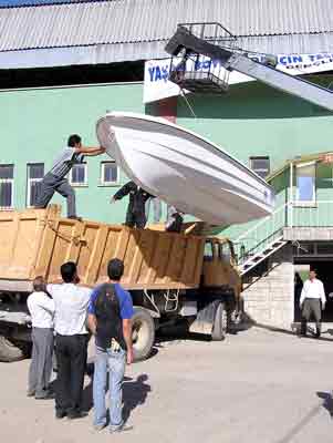 Ulaştırma Bakanlığı Denizcilik Müsteşarlığı'nın "Anadolu Denizlerine Kavuşuyor" kampanyası çerçevesinde Erzincan'a gönderdiği ve üzerinde Denizcilik Müsteşarlığı ile Deniz Ticaret Sanayi Odası'nın arması bulunan 4 tekne, tren garından, görevliler tarafından alındı. Kamyonlarla Gençlik ve Spor İl Müdürlüğü'nün 13 Şubat Şehir Stadı'ndaki deposuna getirilen tekneler, bir vinç yardımıyla yere indirilerek depoya konuldu.