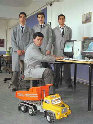 Erzincanda teknik lise öğrencileri, "Bilgisayar Kontrollü Model Kamyon" projesiyle uzaktan kumandalı kamyon yaptı. Fatih Anadolu Teknik Lisesi Bilgisayar Bölümü son sınıf öğrencisi Mahmut Şenol, Faruk Konan, Ekrem Konan ve Tayfun Polat, Erzincanda 25 Mayısta açılacak Mesleki Teknik Eğitim Fuarında (METEF) sergilenmek üzere öğretmenleri Salih Ertuğrulun da desteğiyle "Bilgisayar Kontrollü Model Kamyon" projesi geliştirdi.