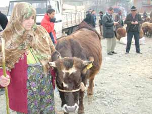 Kurban pazarlıklarının sıklaştığı Erzincan’da ineğini satmak için hayvan pazarına getiren 58 yaşındaki Hanım Özdeş, bin 500 YTL fiyat biçtiği ineğinin parasıyla evinin bayram ihtiyaçlarını karşılamayı umut ediyor. Eşinin vefat ettiğini, bu sebeple hayat mücadelesini erkek kardeşinin yanında sürdürdüğünü ifade eden Hanım Özdeş, pazarlık sırasında erkekler gibi alıcıyla el sıkışmadığını belirterek, "Benim ineğimi beğenen parasını verir, alır gider. Öyle sıkı pazarlık yapmam" dedi.