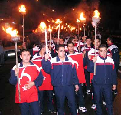 Ellerindeki meşalelerle yürüyen polis okulu öğrencileri değişik marşlar söyledi. Cumhuriyet Meydanı’nda sona eren yürüyüşün ardından yapılan havai fişek gösterileri de kutlamalara ayrı bir renk kattı. Halk oyunları gösterilerinin de yer aldığı Cumhuriyet Meydanı’ndaki etkinlikte, gençler halay çekip doyasıya eğlendi.