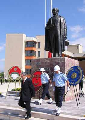 Atatürk'ün Erzincan'a gelişinin 85. yıldönümü bugün düzenlenen törenle kutlandı. Erzincanlı atletler tarafından Türk bayrağının belediye binası önündeki Atatürk anıtına getirilmesiyle başlayan kutlama töreninde, Erzincan Vali Vekili Faruk Işık, Erzincan Belediye Başkanı Mehmet Buyruk ile diğer kamu kuruluşları, siyasi partiler ve sivil toplum örgütleri anıta çelenk sundu. Saygı duruşu ve İstiklal Marşı'nın okunmasının ardından, Belediye Başkanı Mehmet Buyruk günün anlam ve önemini belirten bir konuşma yaptı. Türk milletinin tarihinin şan ve şerefle dolu olduğunu ifade eden Başkan Buyruk, "Türk'ün o nezih ismi kahramanlık ve zaferle bir bütünlük arz etmektedir. Dün, Türkiye'nin kurtuluşunda Ata'sının yanında yer alan Erzincanlılar'ın, bugün de Ulu Önder'in gösterdiği hedef ve idealler doğrultusunda, O'nun ilke ve inkılaplarının yılmaz savunucusu olacağından hiç kimsenin şüphesi olmasın" diye konuştu.