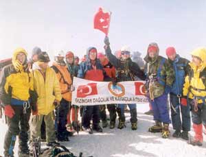 Erzincan Dağcılık ve Kayakçılık İhtisas Kulübü (EDKİK) sporcuları, Munzur Dağlarının en yüksek zirvesi olan Akbaba Zirvesine (3445) Türk bayrağını diktiler.